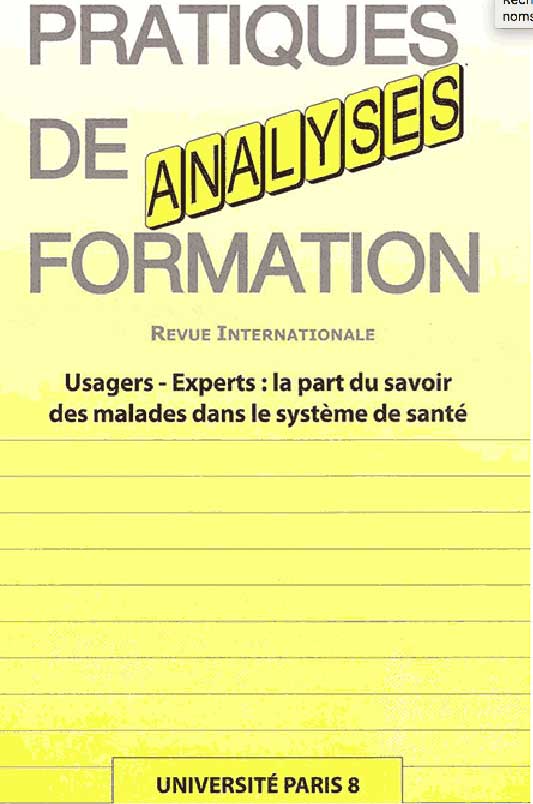 Jouet E., Flora L. (coord.) (2009-2010), Usagers-Experts : la part du savoir des malades dans le système de santé, N°58/59, Pratiques de formation : Analyses, Université Paris 8.